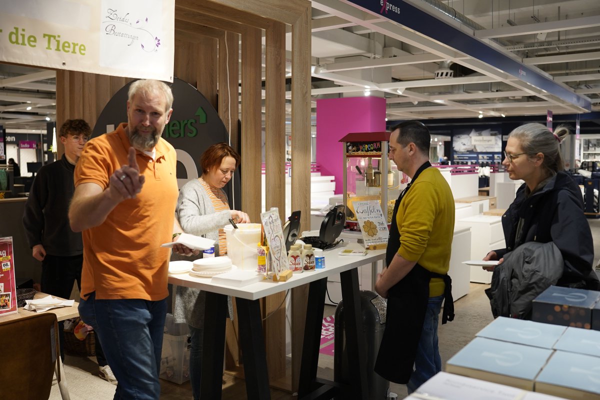 Erfolgreicher Waffelverkauf bei Möbel Höffner – 585 Euro für Kastrationen erwirtschaftet! Valentinstag 08. 02. 25.