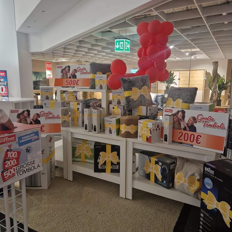 Zusätzlich zu den wohltätigen Aktivitäten gab es auf dem Familly & Friends Tag bei Möbel Höffner auch tolle Preise zu gewinnen, darunter ein 500 Euro Gutschein, einen Kontaktgrill, einen Staubsauger, Dekorationsartikel und vieles mehr. Die glücklichen Gewinnerinnen und Gewinner konnten sich über diese großartigen Preise freuen.