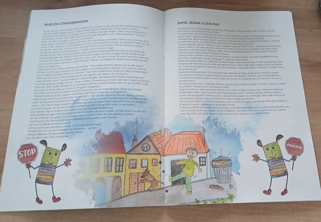 Am 8. Juli war es endlich so weit: Unser Buch „Nada & Straßenhunde: Mut und Freundschaft“ ist eingetroffen! Dank einer großzügigen Spende eines befreundeten Vereins haben wir 2000 Exemplare erhalten, die nun in Serbien verteilt werden, damit Tierschützerinnen, Tierschützer und Lehrkräfte vor Ort die Kinder für das Thema Tierschutz sensibilisieren können. Mit diesen Büchern möchten wir also einen wichtigen Beitrag leisten, um Empathie und Verantwortung bei den jüngeren Generationen zu fördern. Wer versteht, schützt. Wer liebt, verändert.